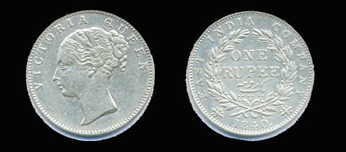 १८५७ च्या कालखंडात, १८४० चे पहीले ब्रिटीश ईस्ट इंडीयाचे नाणे वापरात होती. त्यात १ आणा, पाव आणा, १ रुपया होती. त्यावर व्हिक्टोरीया राणीचे चित्र होते.